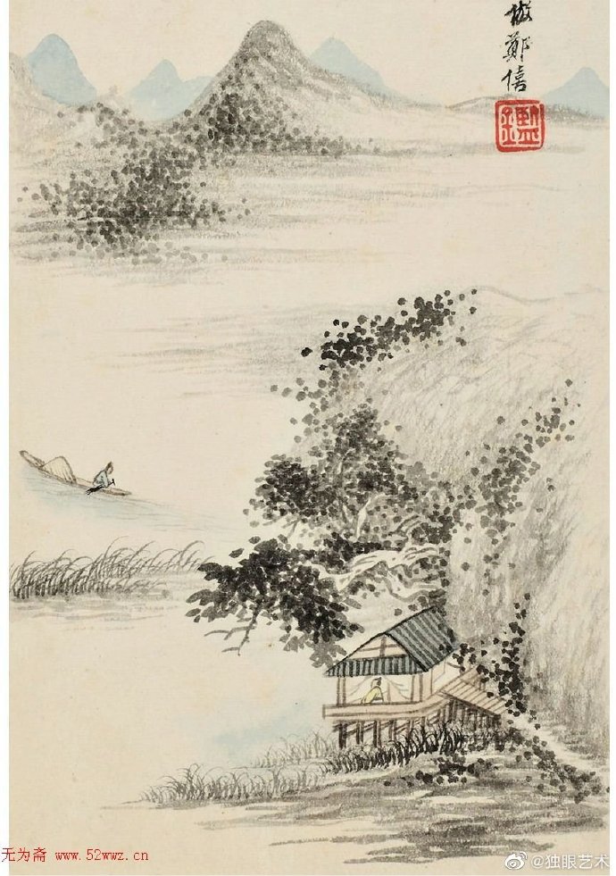 王鑑此册,造境平和而命意幽远;笔墨圆润而格韵超逸;苍而秀,清而厚,磊磊落落,小中见大。名曰仿古,实皆己法。康熙戊申,圆熙七十一岁,是其晚作中之精者。曾经王玉嶂、梁章钜等收藏。玉嶂字鹤舟,乾、嘉时天津人,尝任雷州知府,亦擅山水,取法圆照,麓台(王原祁),有“王廉州(王鑑)后复雷州”之誉;章钜字茝林,福建长乐人,嘉庆进士,官至江苏巡抚,善书,好收藏。此册得名家递藏,更有一代鉴赏家谢稚柳之题识,诚名迹也。
