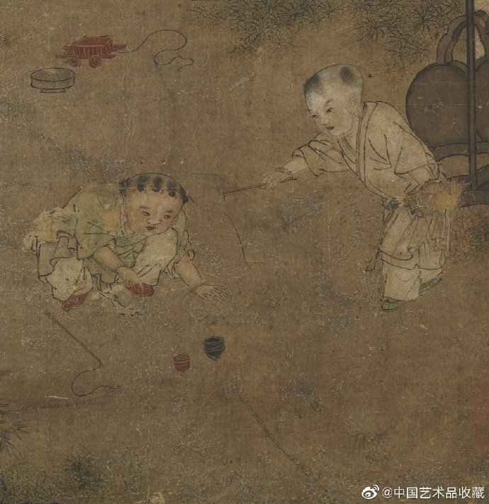 北宋 苏汉臣 《婴戏图》 立轴,绢本设色,58.7×34cm,台北故宫博物院藏。宋代是婴戏题材绘画的成熟和繁荣时期,那个时期的婴戏图大多是反映当时儿童生活实景的画作,这些作品充分体现宋人精湛的技艺和"尚真"的审美追求,也为后世了解宋代社会生活尤其是儿童的真实状貌提供了宝贵的图像资料。