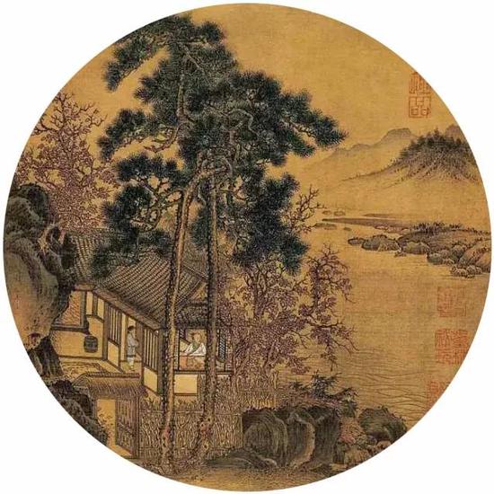 《秋窗读书图》宋 刘松年 纨扇 绢本设色