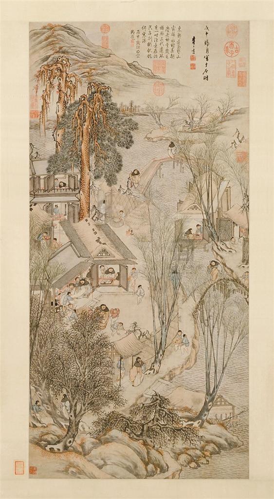 《岁朝村庆图》轴,明代,李士达绘,纸本,设色,纵132.9厘米,横64厘米。现存于故宫博物院。