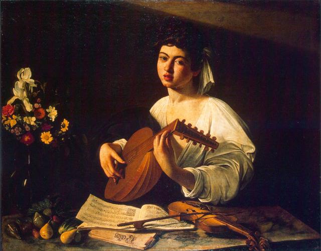 《弹琴者》是油画家卡拉瓦乔最杰出的作品之一,是为音乐的爱好者德尔·蒙代区主教所创。模特儿是少男还是少女,至今还是个谜,油画画中所画写的一届乐谱,是当时在意大利流行的雅各布·艾尔卡德鲁特所创作的通俗歌曲[给君我的爱]。