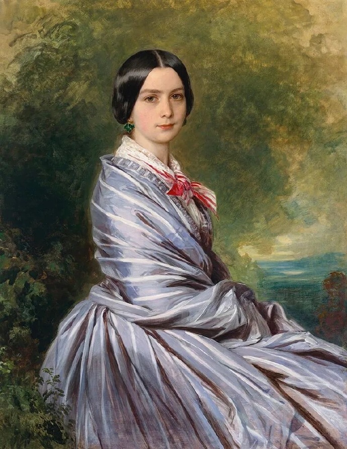 19世纪欧洲女皇的御用画家——Franz Xaver Winterhalter(弗朗兹·克萨韦尔·温特哈尔特)1805年4月20日-1873年7月8日),是19世纪欧洲最负盛名的宫廷肖像画家。温特哈尔特13岁时开始学习绘画和雕塑,18岁就找到了赞助人,1825年他得到了巴登大公爵的定期生活津贴,这代表着他不用为自己的生计所发愁。之后在公爵的支持下,他前往罗马游学一年,回到巴登,在为公爵夫妇绘制完肖像后他选择前往巴黎寻求更大的进步。温特哈尔特迅速的成为巴黎最受欢迎的画家,并被任命为宫廷画家,开始为宫廷贵族们绘制肖像,他擅长在作品中不动声色的美化对象并将官方审美与时下流行相结合,这一切都让宫廷贵族们非常满意。1836年他第一次亮相巴黎沙龙,但并没有得到认可,谦和的温特哈尔特并没有反击,并更加专心的为皇家贵族们服务,法国政权更迭,但他的地位却一直未受到影响,尤其是在第二帝国统治时期,执政者们更是对他青睐有加。晚年他返回把灯,并在法兰克福去世。温特哈尔特的肖像画,既有贵族们喜欢的奢华也有着轻松的气氛,他笔下的女性,栩栩如生,优雅精致,他为奥地利皇后绘制的《巴伐利亚的伊丽莎白》至今都是让世界关注的精彩肖像。