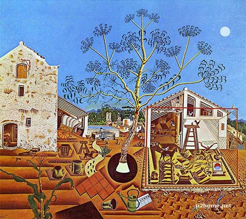 当时,米罗也和旅居巴黎的美国作家海明威相处甚欢。他和海明威经常去同一个拳击馆联系拳击,并结下了深厚的友谊。而自己也生活十分拮据的海明威,为了帮助困难之中的米罗,却东拼西凑地花了5000法郎买下了米罗的早期重要作品《农场》,也就是本文分享的这幅作品。