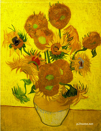 《向日葵》就是在阳光明媚灿烂的法国南部所作的。画面像闪烁着熊熊的火焰,满怀炽热的激情令运动感的和仿佛旋转不停的笔触是那样粗厚有力,色彩的对比也是单纯强烈的。然而,在这种粗厚和单纯中却又充满了智慧和灵气。观者在观看此画时,无不为那激动人心的画面效果而感应,心灵为之震颤,激情也喷薄而出,无不跃跃欲试,共同融入到梵高丰富的主观感情中去。总之,梵高笔下的向日葵不仅仅是植物,而是带有原始冲动和热情的生命体。