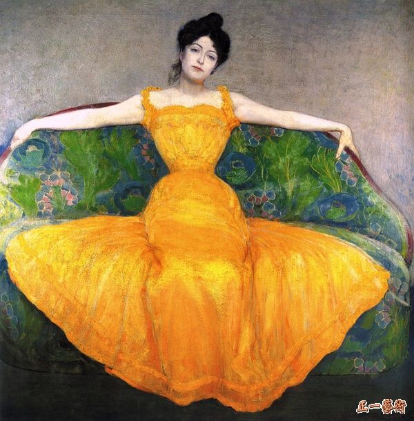 作者:麦克斯·科茨维尔(Max Kurzweil 1867-1916)维也纳分离派画家,他在1897年,与其他18名成员成立了“维也纳分离派(Vienna Secession)”,带头人是古斯塔夫·克里姆特。《穿黄裙子的女人》于1899年在分离派自己的全新场地中展出。