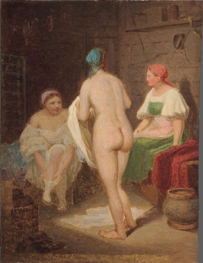 俄国画家阿·加·维聂茨昂诺夫Alexey Venetsianov(1780-1847)1820年代的作品《浴室内》