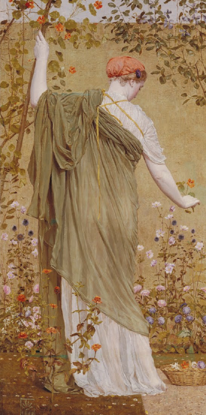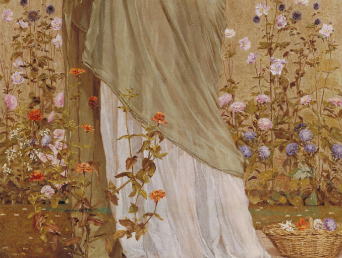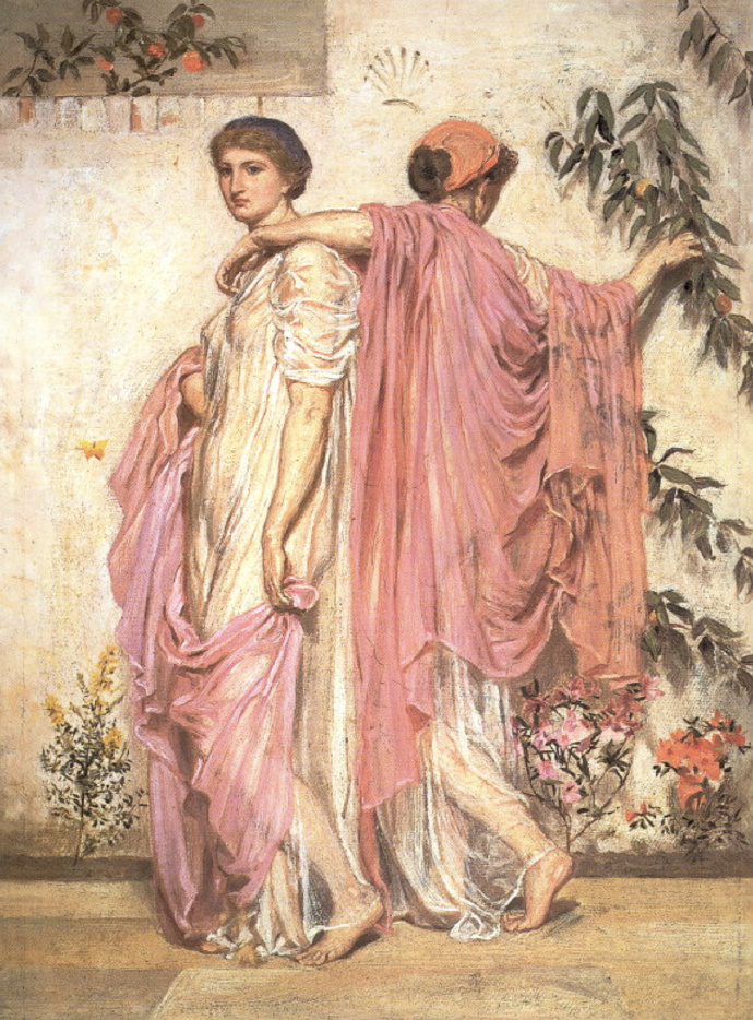 Albert Joseph Moore的每一幅画都是经过深思熟虑的结果,在构图和色彩上力求和谐,以人的形体为基础,以真正的希腊精神为研究对象。他画里的人物身披透明、褶皱较多的服装,配合微妙的色彩关系产生了一种若隐若现又引人驻足的魅力。