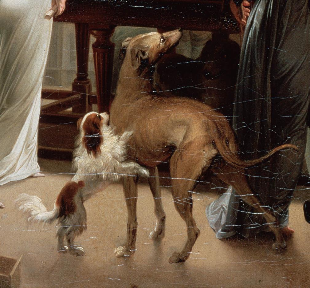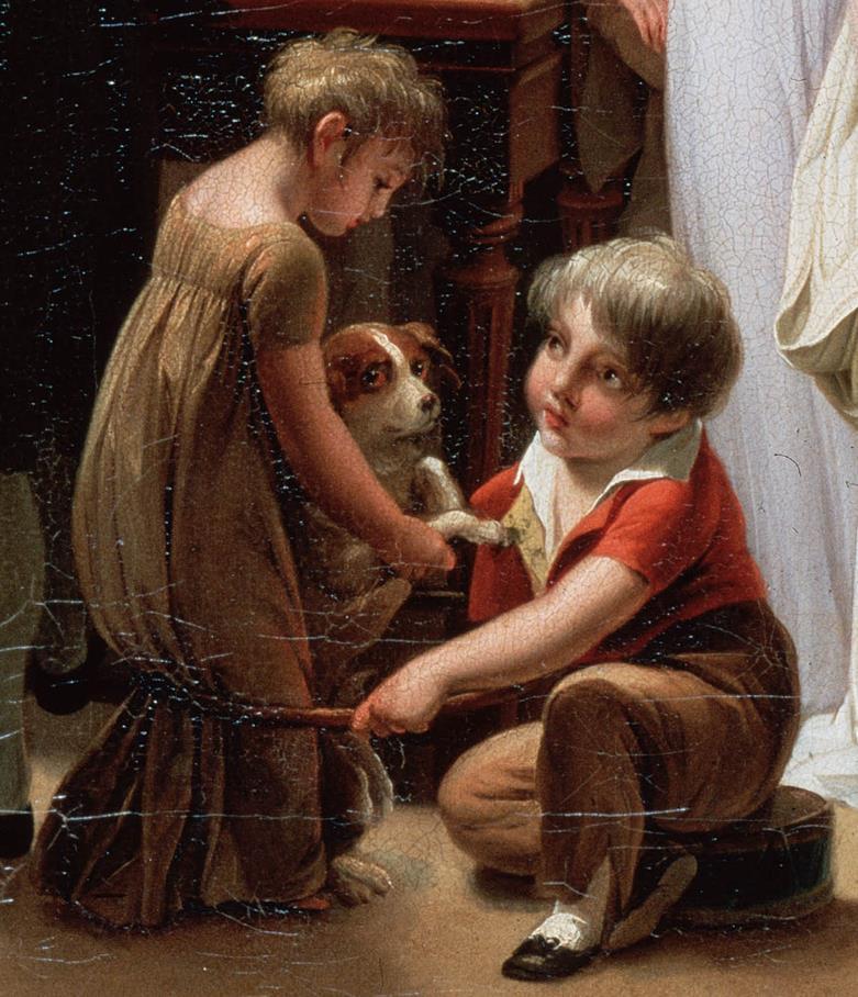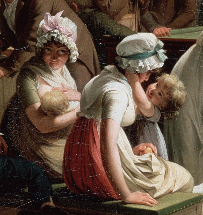 作品展现了两百年前欧洲人的生活。这是一幅大场面的风俗画,可谓法国一个阶层生活的缩影,画中人物神态自如且真实,富有生活情趣,人物个性鲜明且生动,连小动物都可爱如真,画家以对生活入微的观察,运用古典细腻的造型方法,再现了不同人物、不同衣着和不同环境道具,具有不同的空间感和质感。
