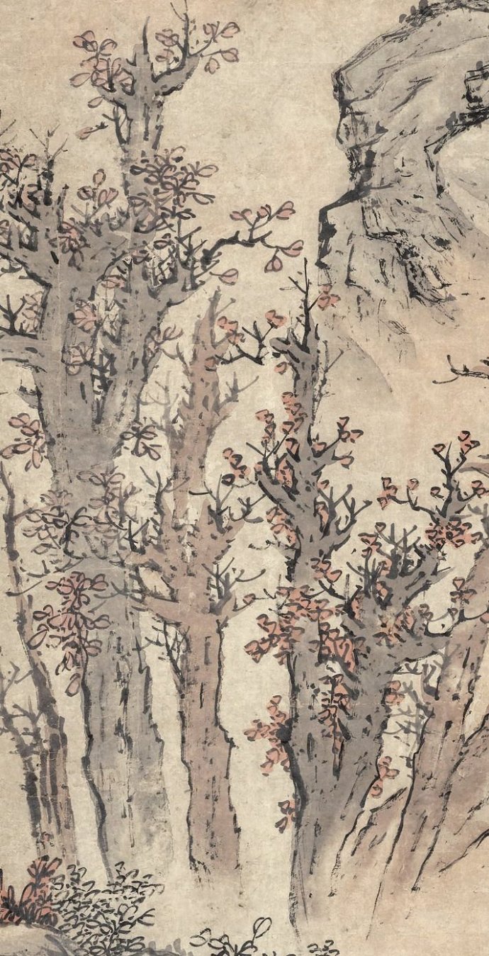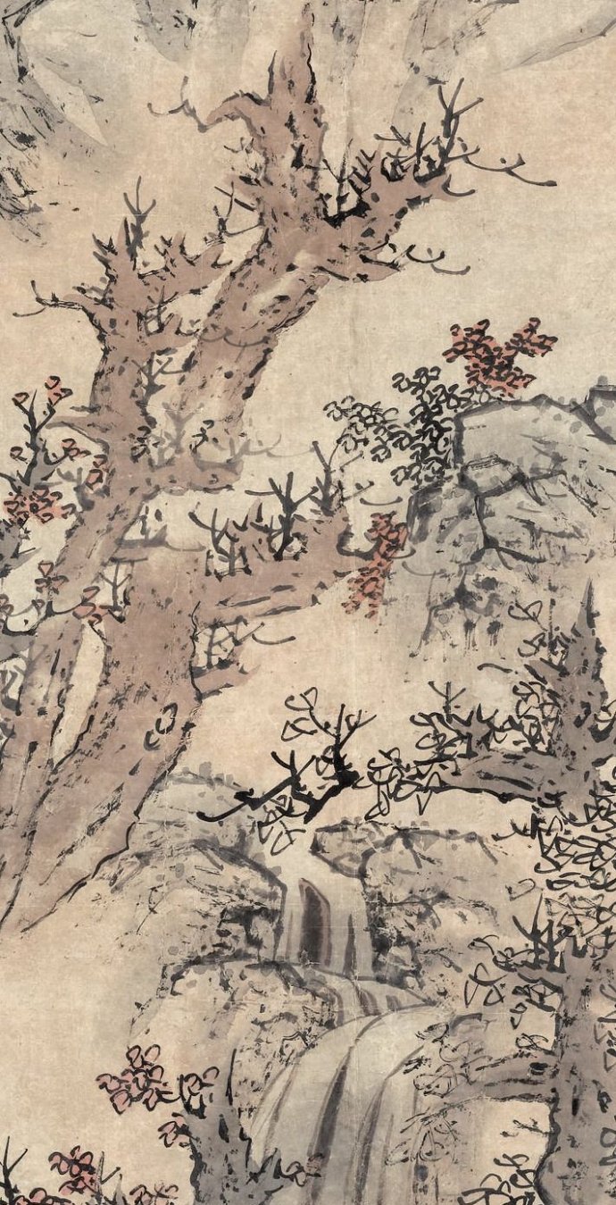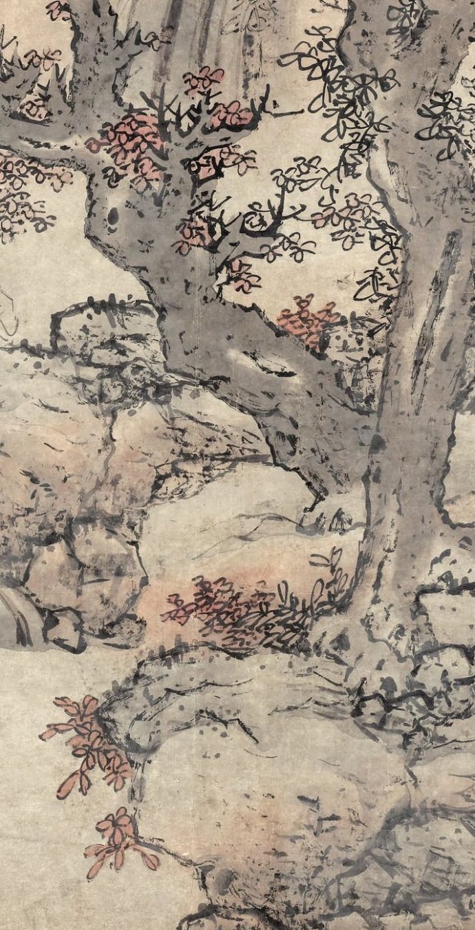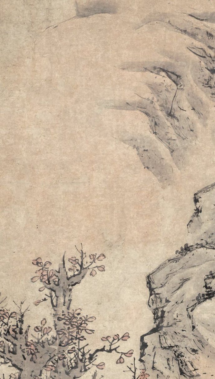 蓝瑛《秋山清话图》,立轴,设色纸本,尺寸:148.5×81.5 cm,约10.9平尺。庚子(1660年)年作。题识:庚子重九,画于山阴道上。蜨叟蓝瑛。钤印:蓝瑛之印、田叔。