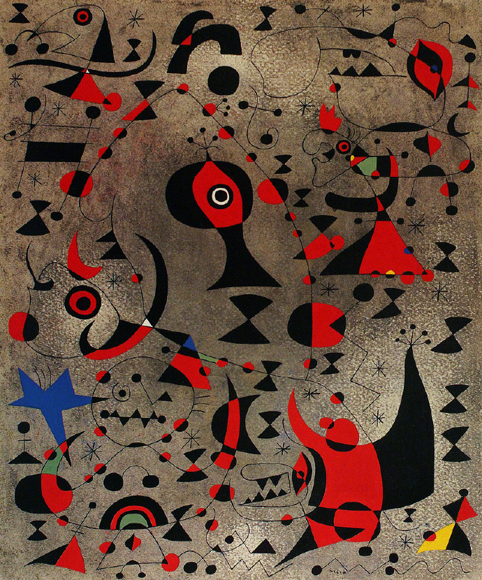 米罗艺术的,并不在于他的肖像画或绘画结构,而是他的作品有幻想的幽默——这是其中一个要素。另一个就是,米罗的空想世界非常生动。