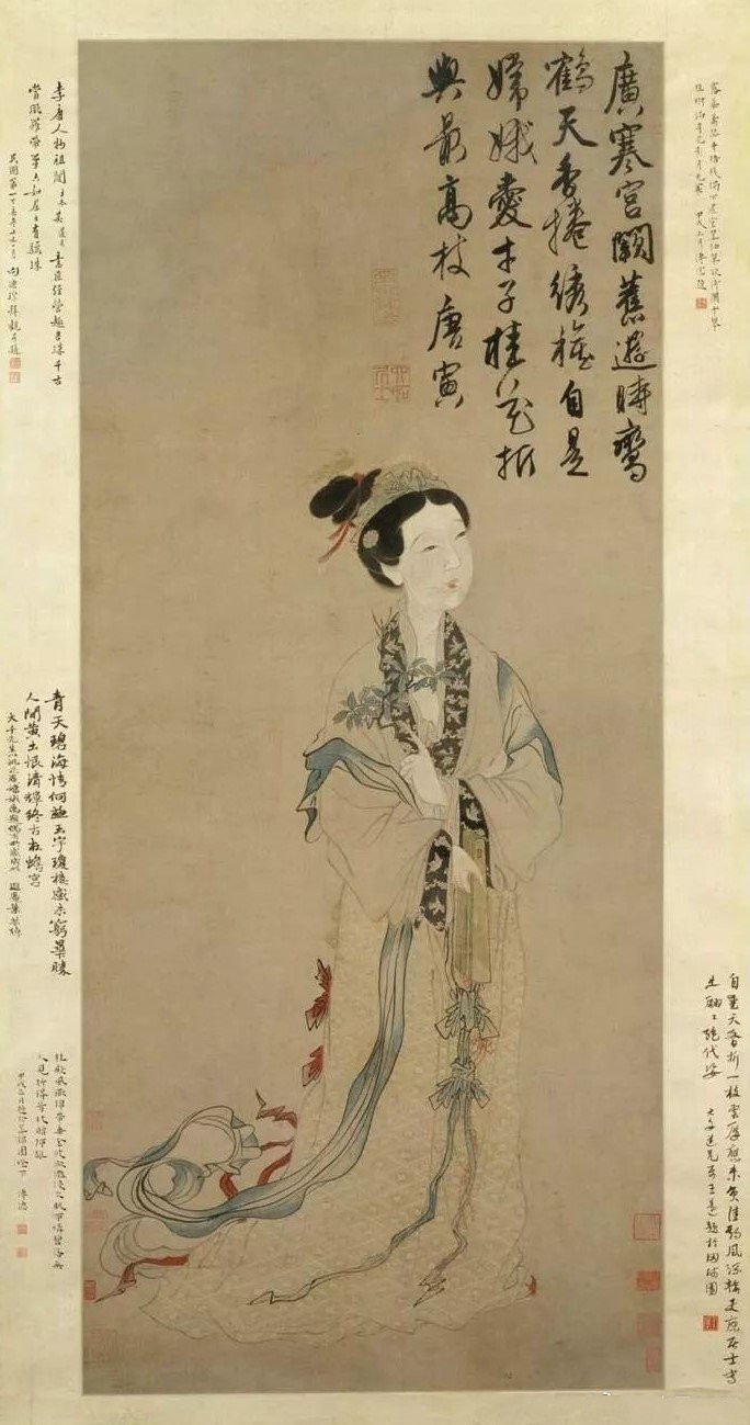 唐寅《嫦娥执桂图》,纸本设色,纵135.3厘米,横58.4厘米,现藏于美国大都会艺术博物馆。