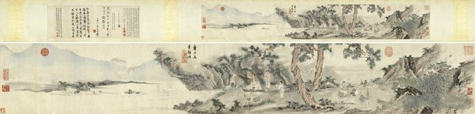 唐寅《琴士图》卷,纸本设色,纵29.2厘米×横197.5cm,现藏于台北故宫博物院。