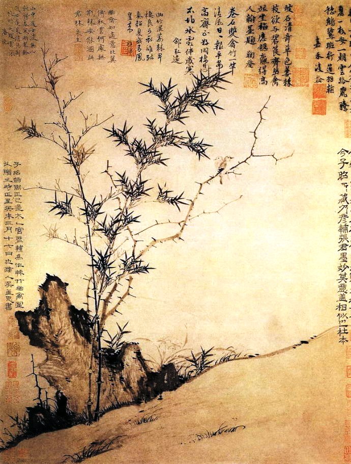苍梧竹鹰图轴 元 张舜咨(1329)