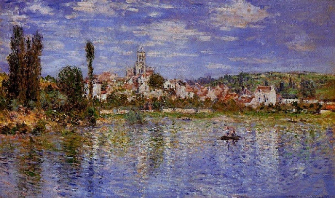 《维特伊的夏天》夏天是炎热的,但在莫奈笔下,在蓝天、白云和水映衬下的夏天给人一种特别凉爽的感觉,仿佛吹着习习凉风。