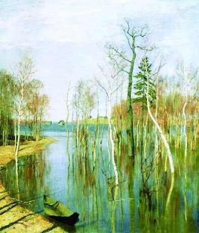 艾萨克 .列维坦作品《春汛》