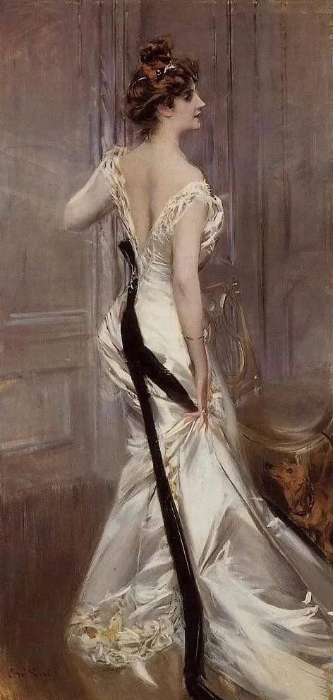 乔瓦尼•博尔迪尼Giovanni Boldini(意大利1842-1931)油画作品《黑色饰带》。