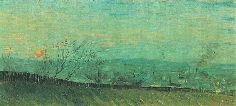 1、蒙马特的日落 1887年上半年 巴黎 布面油画 21.5x46.4cm 阿姆斯特丹凡高博物馆 96