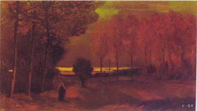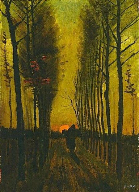 2、日落时的林荫道 1884年10月 纽南 布面油画 45.5x32.5cm 荷兰库勒穆勒博物馆 448