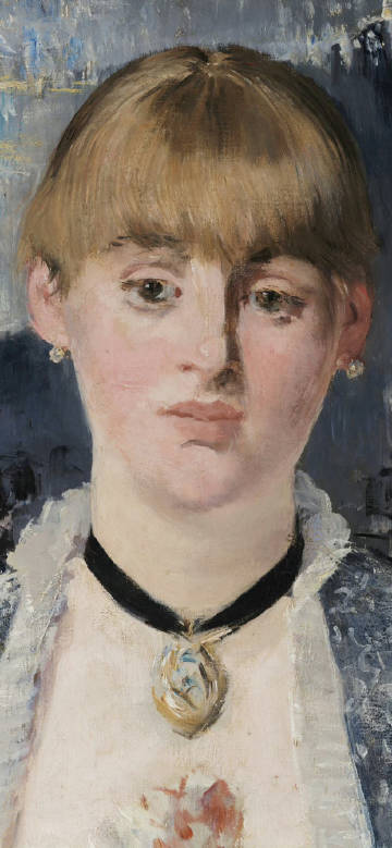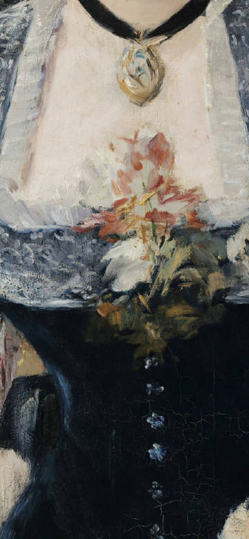 这幅《女神游乐厅酒吧》,又称《伯热尔大街丛林酒吧》( Bar in den Folies-Bergère),是马奈所曾画过的一幅最富于幻想性的作品,也是马奈逝世前一年完成的一幅重要作品。不仅构图很有气魄,更重要的是他运用光色效果真实地表现了巴黎这一著名酒吧间的气氛。作为这一作品中的主要人物形象,是站在柜台后面正在接待顾客的女招待。马奈用细腻的笔触描绘了这个青年妇女青春的肤色和圆润的手臂,以及她面前质地各不相同的各种瓶子,鲜美的水果和芬芳的花卉。有意思的是,马奈利用女招待身后的一面大镜子,将女招待与顾客在谈话,以及坐在餐桌上的许多顾客,都朦朦胧胧地表现了出来,使有限的画面生动地展示了酒吧间的开阔场景和灯光闪耀、人声嘈杂的气氛。也正是这种富有整体感的气氛,把广阔的场面和繁杂的细节统一起来,形成一个气概不凡的构图。在马奈生命的最后,官方沙龙展出了这幅杰作,并授予他“荣誉团勋章”。这迟来的荣誉,给马奈带来满足同时也带来了遗憾,他抱怨道:“这实在太晚了。” 作者:爱德华·马奈(Edouard Manet 1832-1883年),法国印象主义画派中的著名画家,尽管他从来没有参加过印象派画家的联合展览,仍被认为是印象主义画派的奠基人,很早就被后来的印象派画家们视为大师,对欧洲绘画的发展有重要贡献。马奈是地道的巴黎人,出身于上流社会,父亲是法官,希望马奈也能成为律师或官员,但他执意学画。他的作品取材于巴黎的生活,主要是画那些在阳台上、公园里、赛马场、游船上的人们。他还是一位非常出色的肖像画家。在印象派初期,他表现了一个画派领袖的才干,是一位承前启后的大师。代表作品有《奥林匹亚》、《草地上的午餐》、《吹短笛的男孩》等。