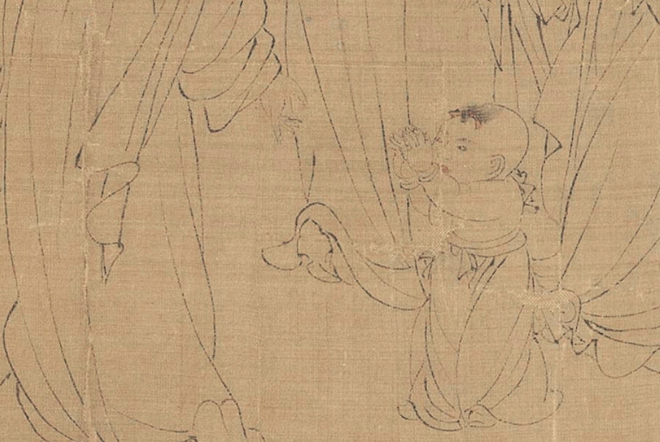 图画后提拔:周文矩宫中图妇人小儿其数八十