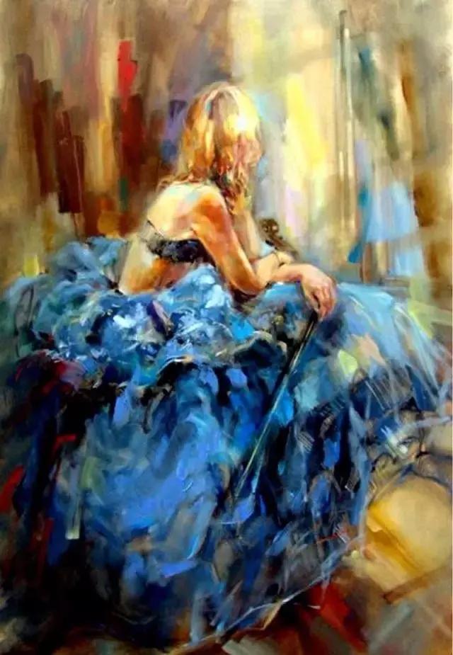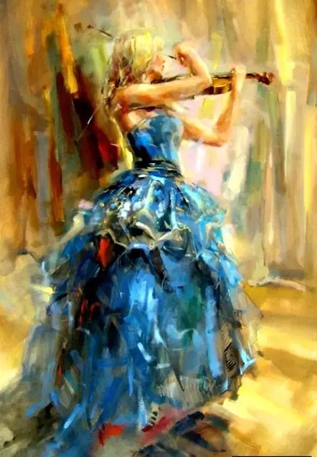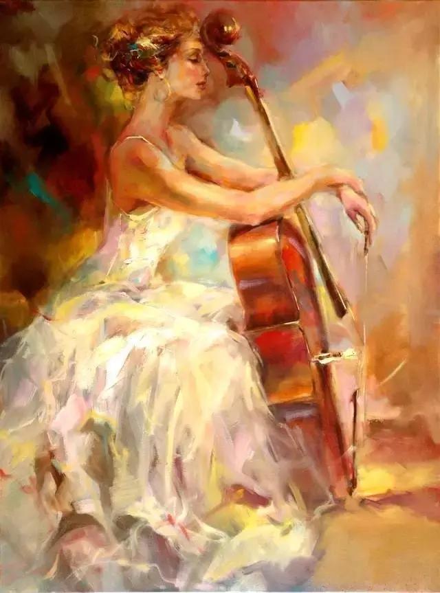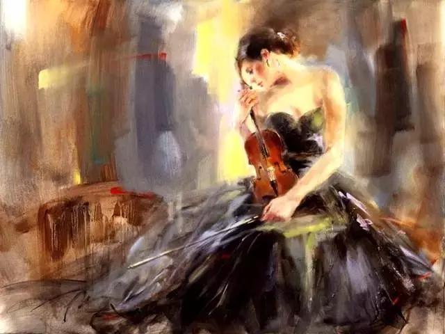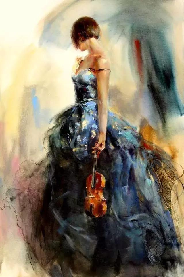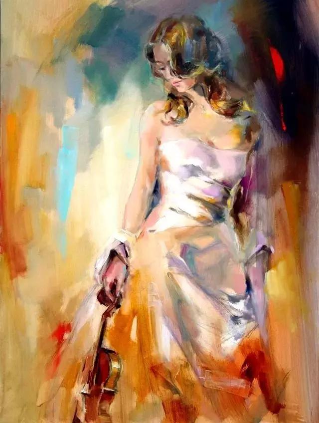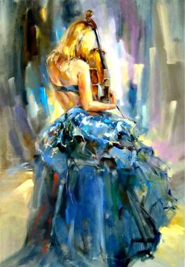 俄罗斯女画家油画《提琴女孩》