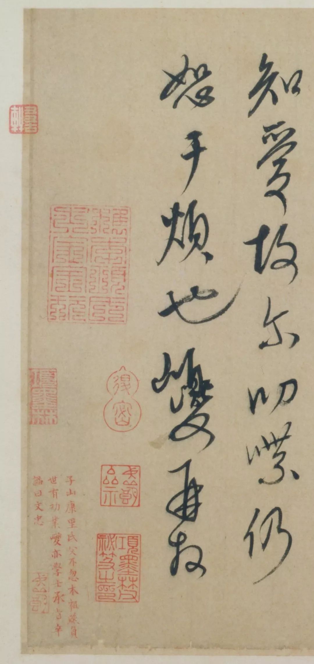 帖左下角有朱笔楷书小字3行,记录的是康里巎传略:“子山,康里氏,父不忽木,祖燕贞,世有功业。巎亦学士承旨。卒谥曰文忠。”