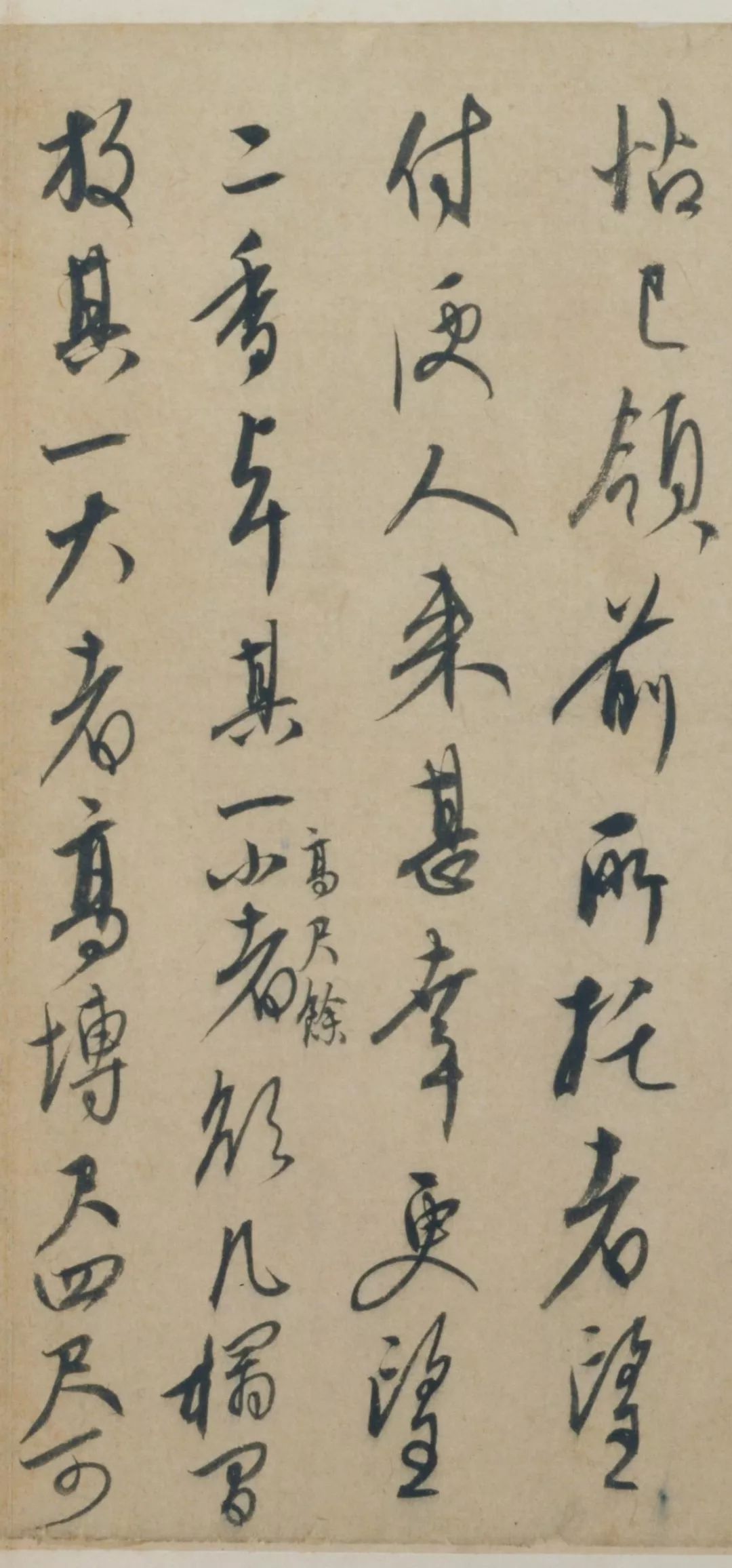彦中州判贤友执事者,范涣卿所寄来绒大二帖,已领。前所托者望付便人来,甚幸。更望二香卓,其一小者(旁注“高尺余”3小字),欲几榻间放;其一大者,高博尺四尺可也。得坚实素木为之,妙!复望惠及诸样海味,有便寄下。辄恃知爱,故尔叨喋,仍恕干烦也。巎再拜。