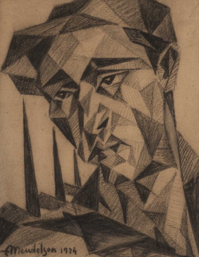 在立体主义的肖像画《父子》中,要表现一个年轻人的形象,毫无疑问的就是需要把他的头稍微转一转,也要使用强烈的明暗对比。这两幅作品都出自同一位艺术家之手。更重要的是,男人在生理上的相似性让我们质疑这幅画的标题。门德尔森的这幅自画像反映了波兰第二代犹太艺术家的状况,他们在犹太教传统和欧洲前卫倾向之间左右为难。封闭的实体对二维平面的抵抗是一种身份冲突的表达,这种冲突延伸到传统和文化之间;它指的是埃里希·弗洛姆的从自由到自由 freedom from and freedom to。