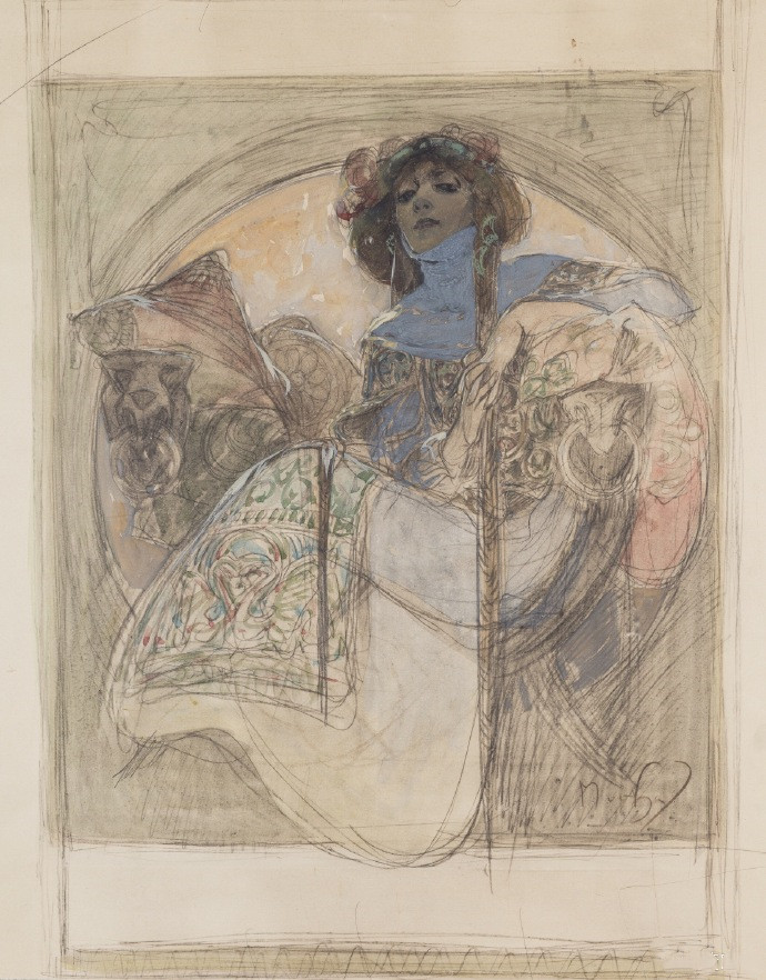 阿尔丰斯·穆夏《坐着的女人— 海报研究》