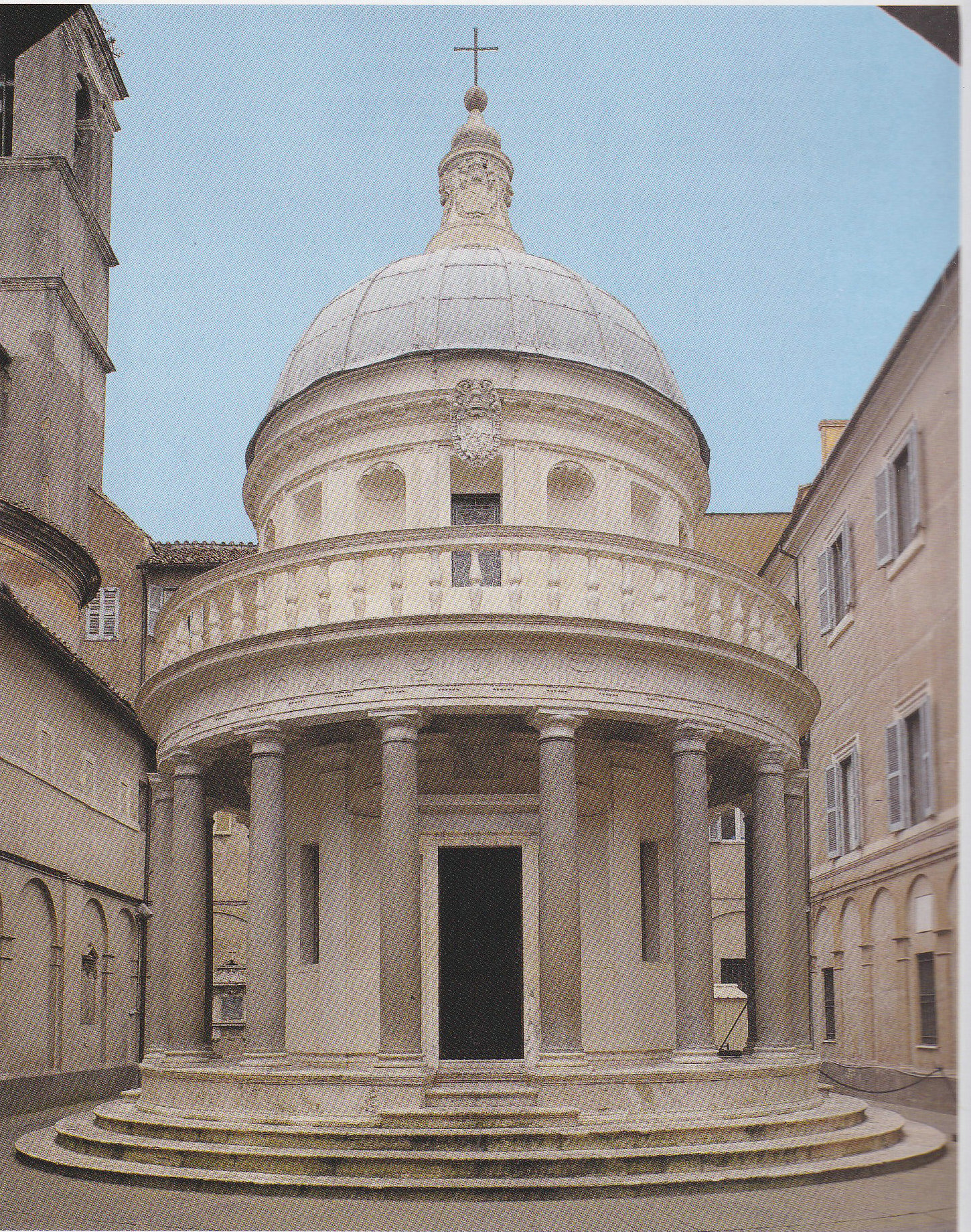 背景上的建筑,是拉斐尔虚构的以色列人国王所罗门建立的庙宇--所罗门神庙。根据学者分析,这个神庙的造型,很可能来自于与拉斐尔同乡的著名建筑家布拉曼特(Donato Bramante,1444-1514)于1502年开始在罗马建造的文艺复兴建筑《小庙宇》(Tempietto)。小庙宇作为古老神庙的一种变体,后来成为了众多杰出建筑的样板,包括了梵蒂冈圣彼得大教堂、伦敦圣保罗教堂(St Paul's Cathedral)和巴黎先贤祠(Panthéon,Paris)。