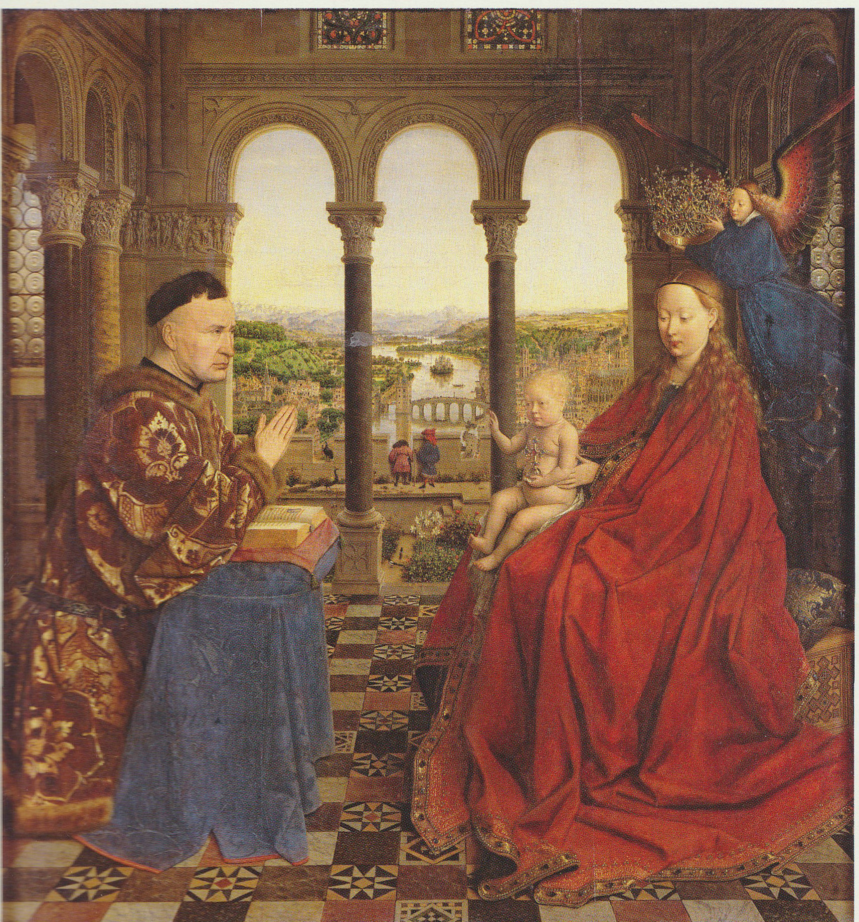 文艺复兴时期名画 扬·范·艾克的《圣母与执政官尼古拉斯·罗