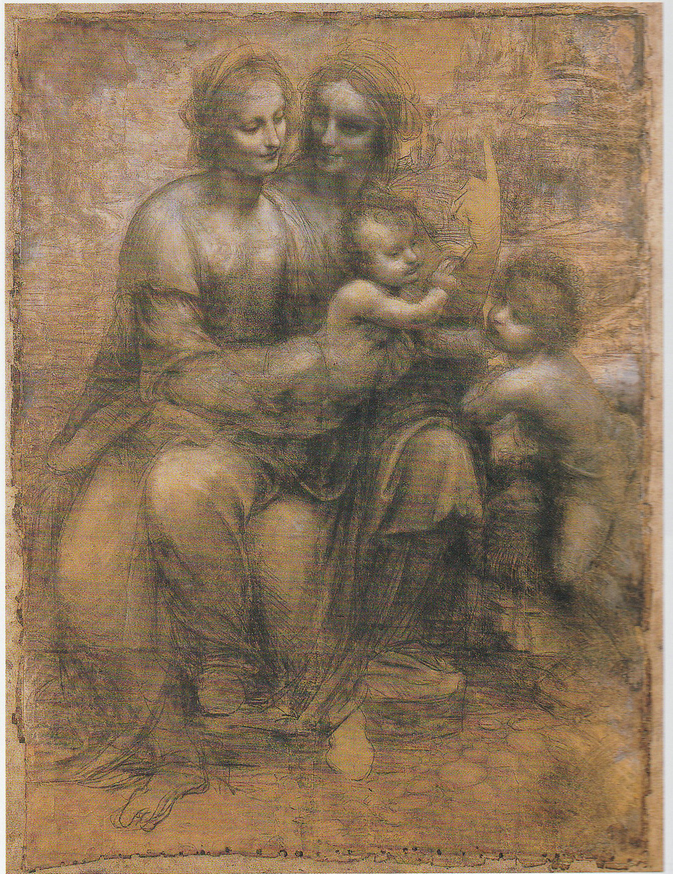 1499年法国入侵米兰,米兰公爵卢多维科·斯福尔扎(Lodovico Sforza,1452-1508)离开了米兰。为米兰公爵服务的达芬奇返回了佛罗伦萨。在佛罗伦萨,他创作了人生中最后两幅绘画作品:《圣母、圣子与圣安妮》(The Virgin and child with Saint Anne)(图1)以及《蒙娜丽莎的微笑》(Mona Lisa)。此外,还有一幅为佛罗伦萨天使报喜教堂(Santissima Annunziata, Florence)创作的祭坛画《圣母、圣子、圣安妮与施洗者约翰》,但仅完成了素描图(图2)。