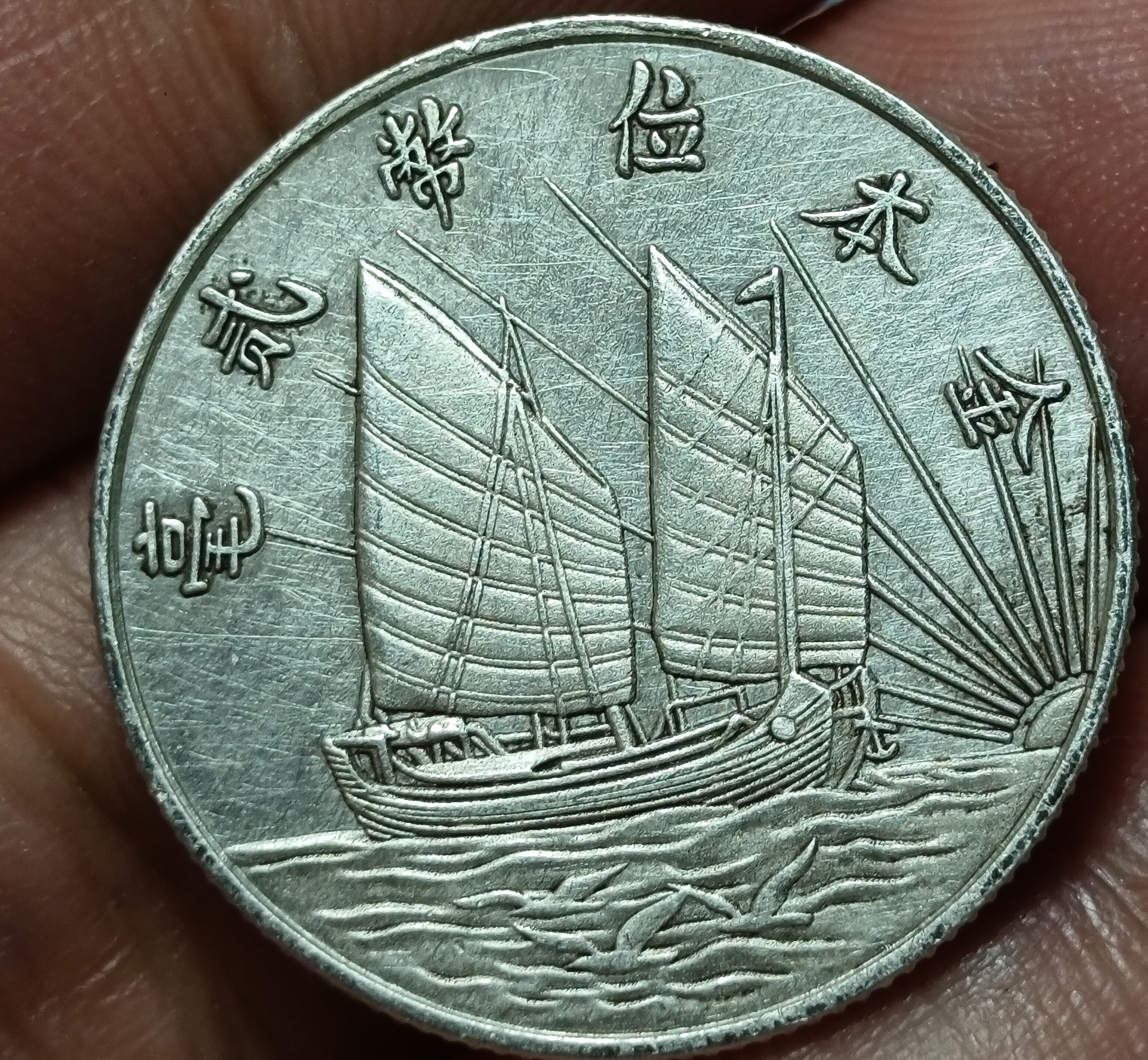 中华民国二十一年孙像金本位贰毫双帆船银币