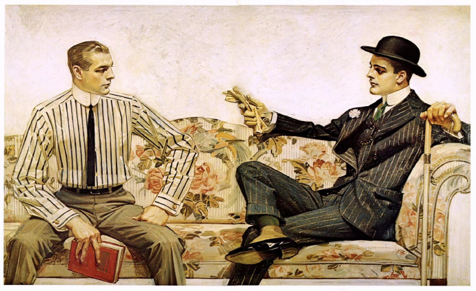 插画艺术家 Joseph Christian Leyendecker(1874 年 3 月 23 日 - 1951 年 7 月 25 日)出生于德国,是 20 世纪初最杰出的插画艺术家之一。他一生绘制了很多海报、书籍和广告插图,就1896 年至 1950 年间,他画了 400 多本杂志封面,仅《周六晚报》就为其绘制了 322 张封面,并为其内页绘制了许多广告插图。他的成就在当时无人能及,几乎引导了现代杂志插图设计的整个理念导向。