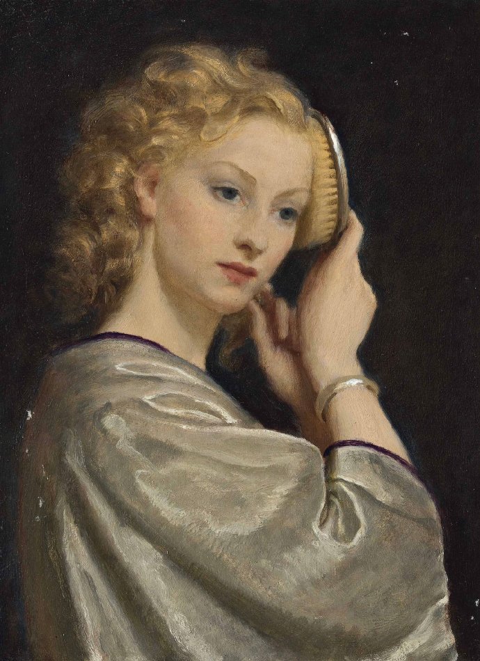 John Bulloch Souter(Scottish,1890-1972)Girl combing her h