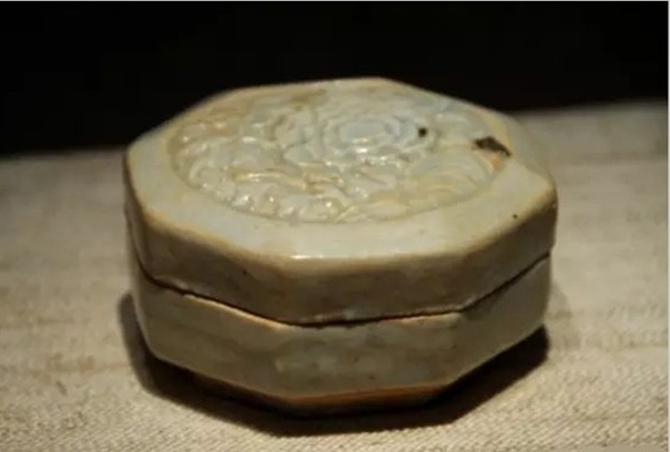 青白釉剔牡丹纹八方盒 宋 公元960~1279年