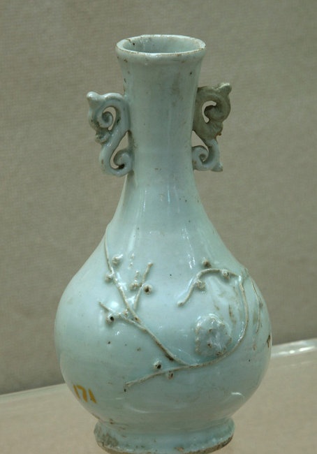 卵白釉堆贴梅花纹双耳瓶 元代