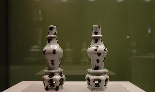 青白釉点褐彩连座瓶 元代