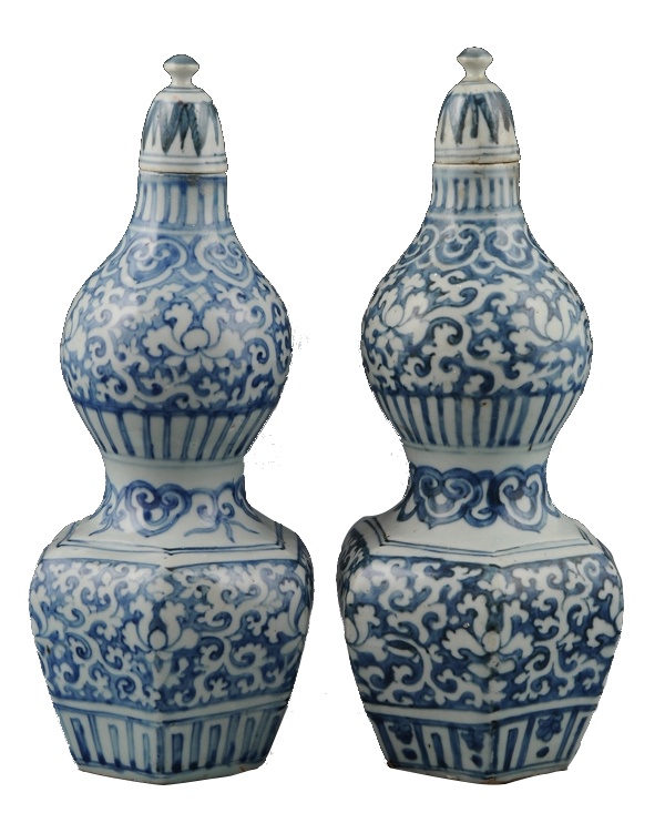 青花缠枝花卉纹葫芦盖瓶 明嘉靖