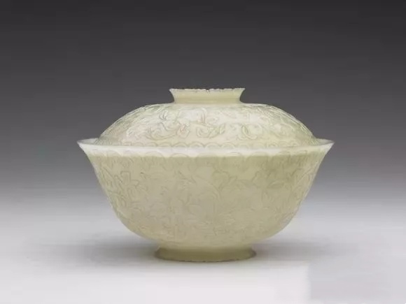 清 玉雕花盖碗