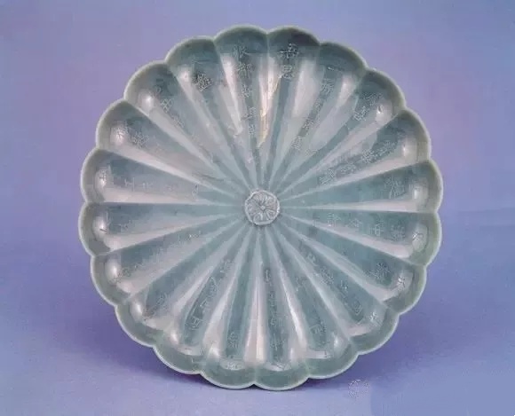 清 青灰玉莲瓣大盘
