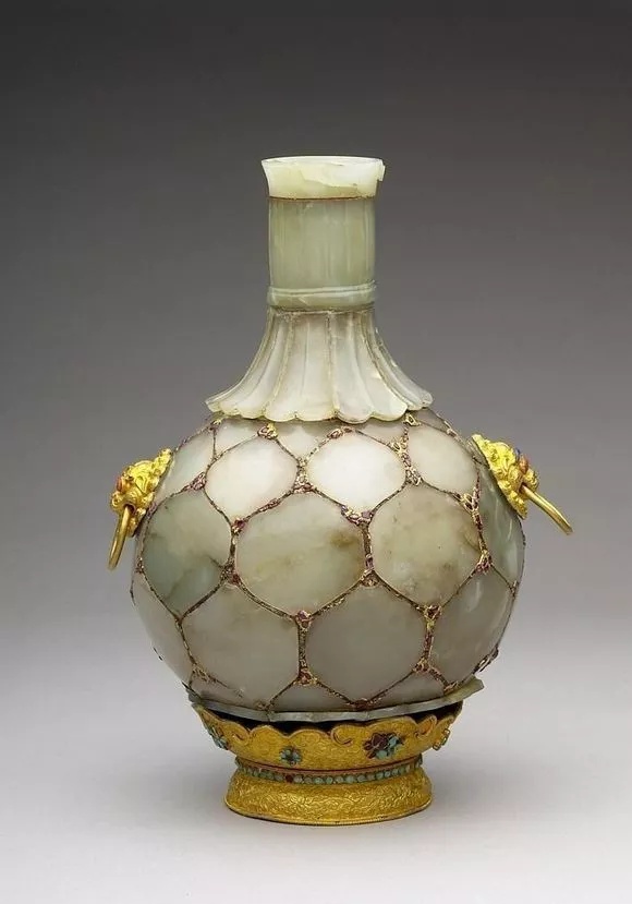 “痕都斯坦”为一地名,即现在的印度北部,隶属于蒙兀儿帝国的势力范围。其地所制玉器华丽细腻,风格独具,艺术史名之为“蒙兀儿玉器”。 同时,土耳其半岛的鄂图曼帝国亦有玉器工艺,风格近似,然精美不逮。18世纪盛清之际,二者皆经新疆东传到清廷。