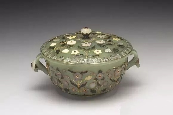 青玉两耳嵌宝盖碗