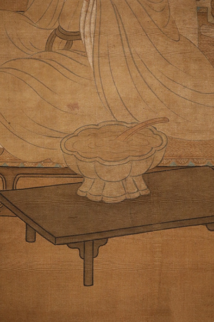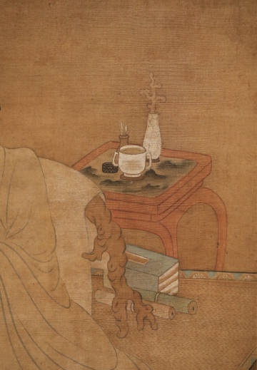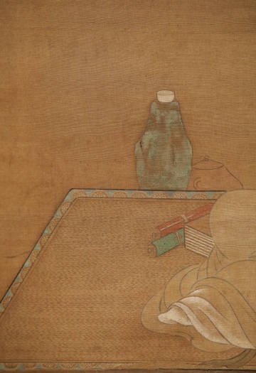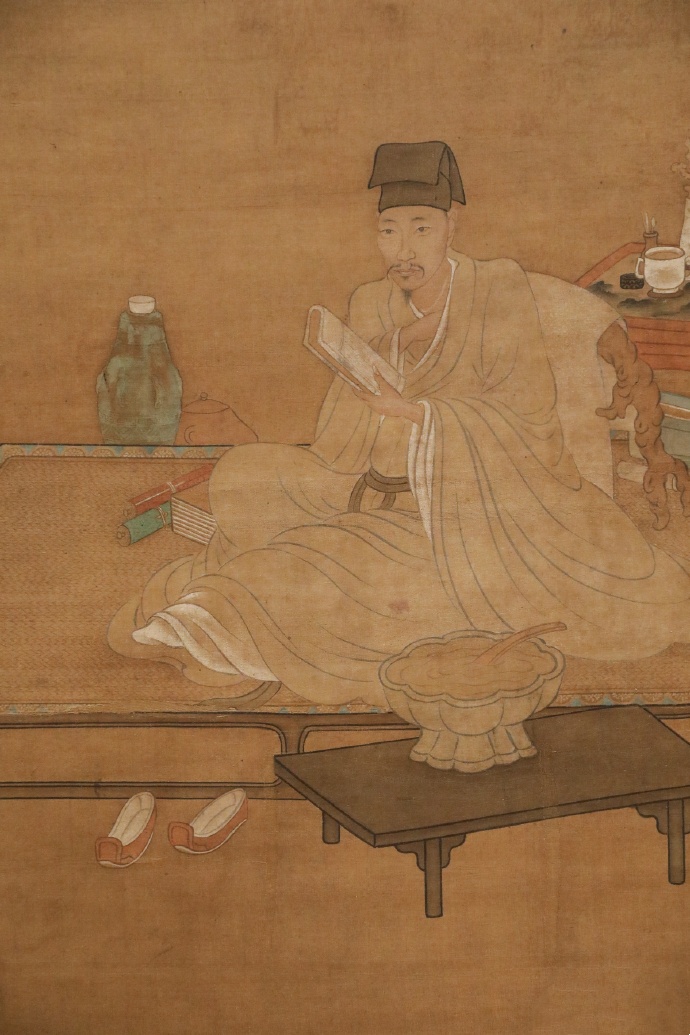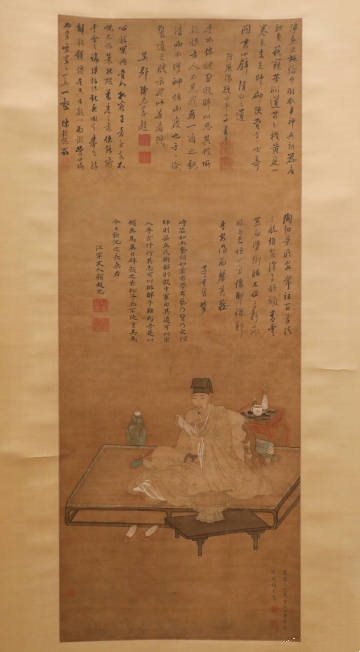 曾鲸(1568-1650),字波臣,福建莆田人,流寓南京。擅画人物肖像,用墨骨法,反复烘染后略敷色彩,人称“波臣派”。此图作于万历四十七年(1619),作者时年五十二岁。