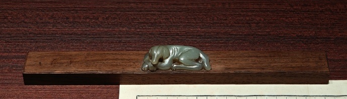 图5 嵌玉黄花梨木镇纸(明) 上海市宝山区朱守城夫妇合葬墓出土