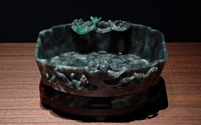 图9 三螭纹翡翠笔洗(清)