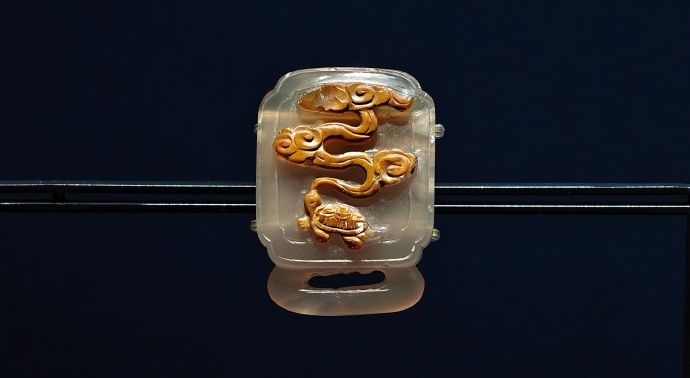 图2 乌龟吐云纹玛瑙带饰(元)