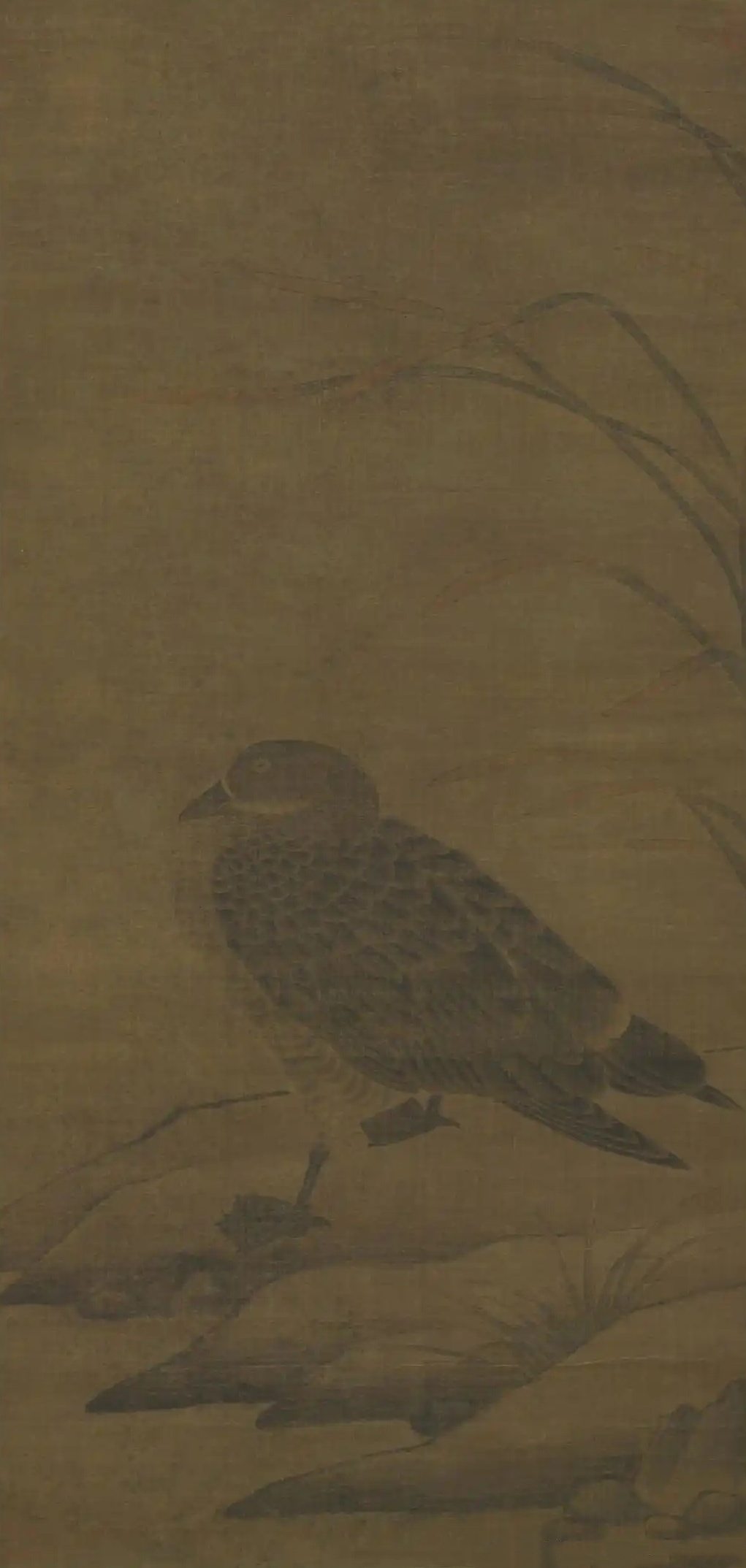 北宋,崔白(传)《芦汀宿雁》,纵106.5厘米,横51厘米,绢本淡设色,中国台北故宫博物院藏。