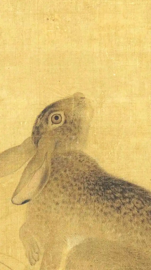 《双喜图》描绘出深秋时节,寒风萧瑟,枯木衰草,落叶凋零,呈现出一派秋风肃杀的冷峭凄凉景象。整幅画面当中两只灰喜鹊之间,灰喜鹊与野兔之间,鸟、兽与自然环境之间,刻画的生动自然,情景交融,充分的表现出它们之间相互呼应的关系。画中各物在作者的笔下蠢蠢欲动,大得自然野趣。