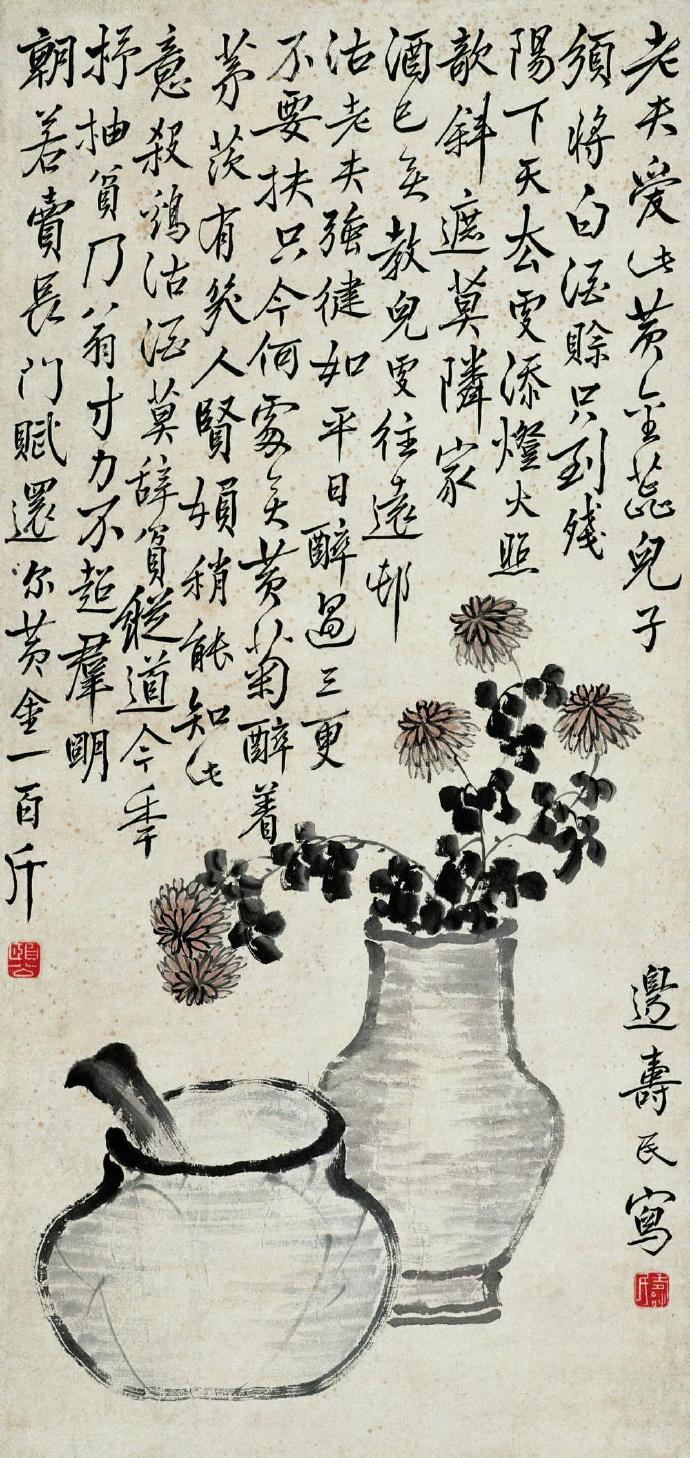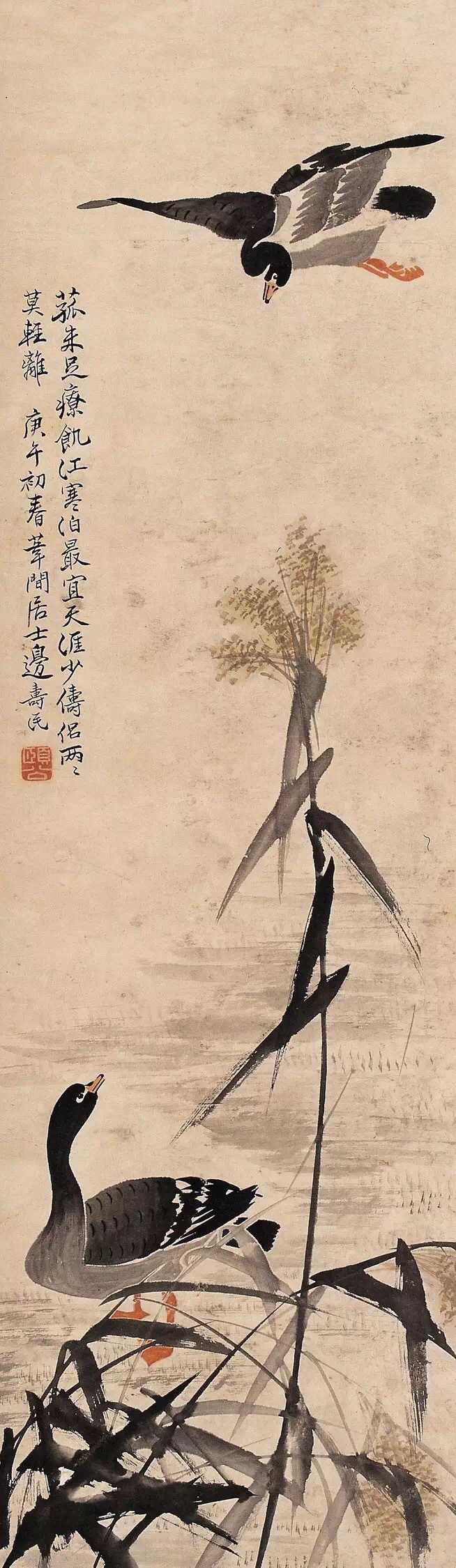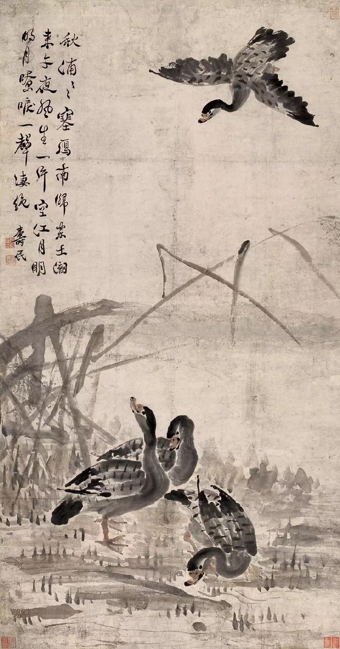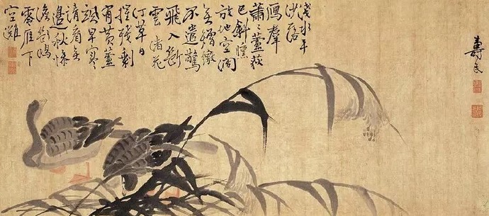 边寿民的大半生与芦雁息息相关,慧眼观雁、慧心咏雁、慧手画雁,尤以芦雁为著。泼墨中微带淡赭,浑厚中饶有风骨。苍浑生动,朴古奇逸,曲尽芦雁鸣姿神态。时人称为“边芦雁”。边寿民“性疏放,不以俗事撄怀”。自称其居所为苇间书屋。工诗能书,人称“淮上高士”。间画山水、花卉,别有逸致。